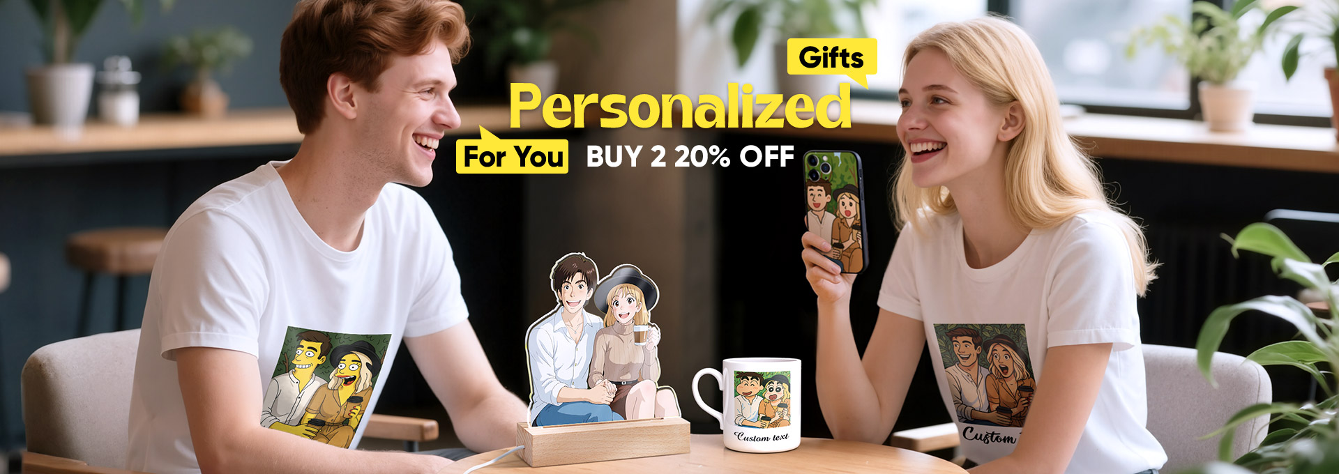 Personalized Cartoon Tee Shirt with Anime Style Portrait Fun Gift for Loved OneBUY 2 20% OFF -