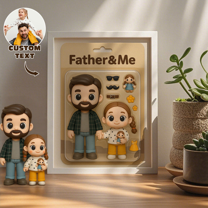 Father's Day Gifts Custom Toy Figure Wooden Frame, Flat Printed Frame Personalized Toy Box Art Gifts