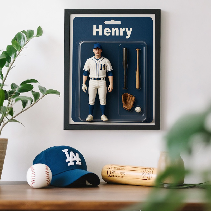 Custom Action Figure Portraits Wooden Frame, Cartoon Style Toy Figure Printed Frame