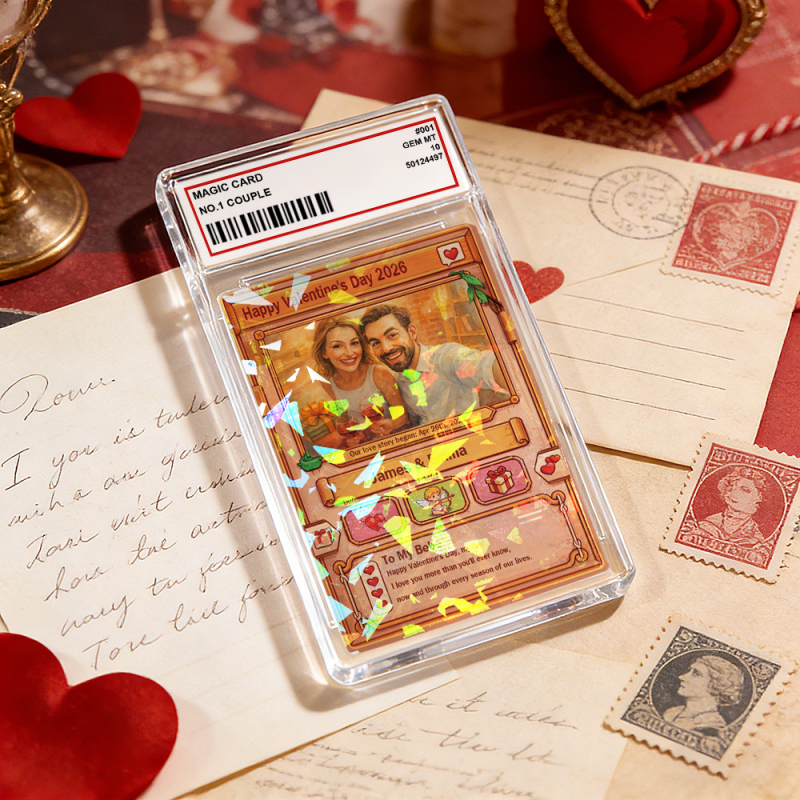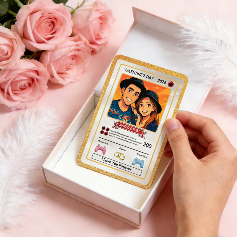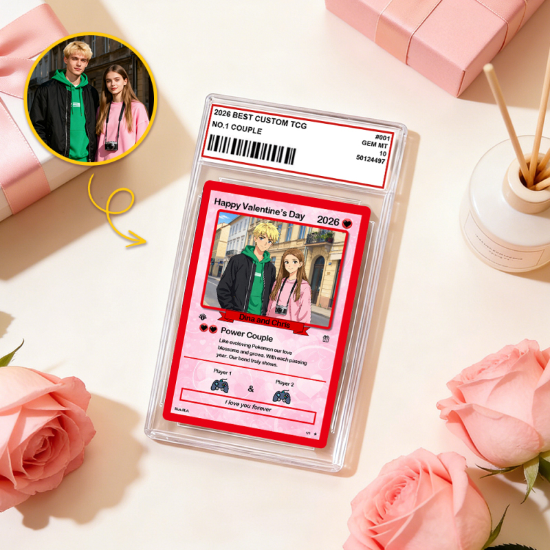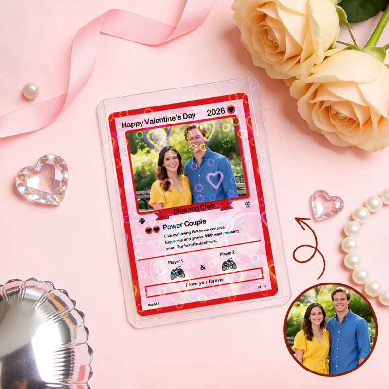 Personalized Power Couple Card, Custom Anniversary Card Couple Photo Anime Style Gift for Lover