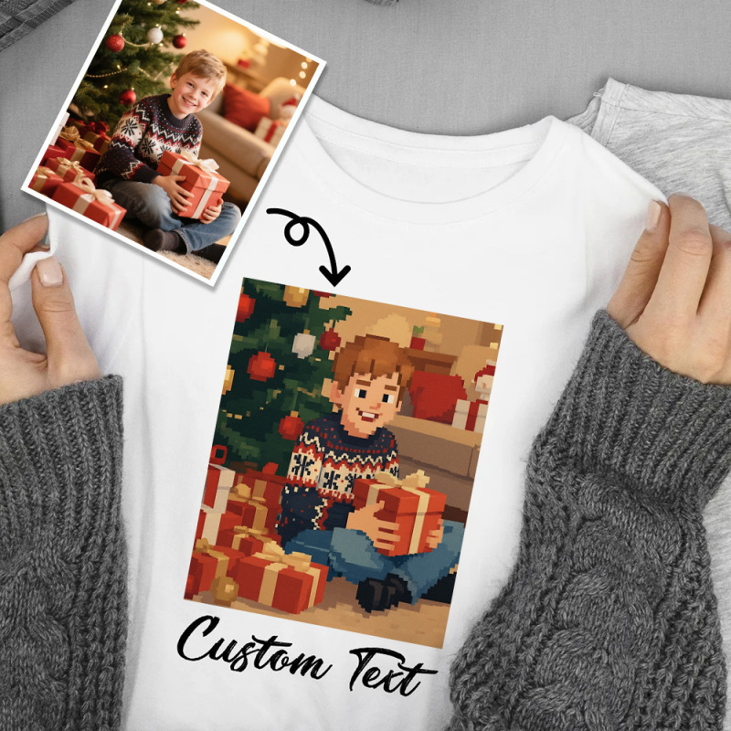 Custom Cartoon Style Photo T-Shirt Personalized Anime Portrait Tshirt with Custom Text Gift for Christmas