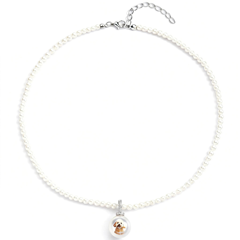 Custom Pet Photo Pearl Necklace Personalized Pet Portrait Pearl Chain Can Be Adjustable Pendant Necklace Natural Pearl Jewelry Gift For Pet Lovers