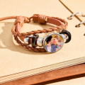 Capture your most cherished photo and wear it as a statement piece with our Custom Photo Leather Bracelet. This trendy accessory combines multi-strand braided and flat leather cords with a central cabochon that beautifully displays your uploaded picture. It’s the perfect way to keep memories of your partner, family, friends, or pets close to your wrist every day.