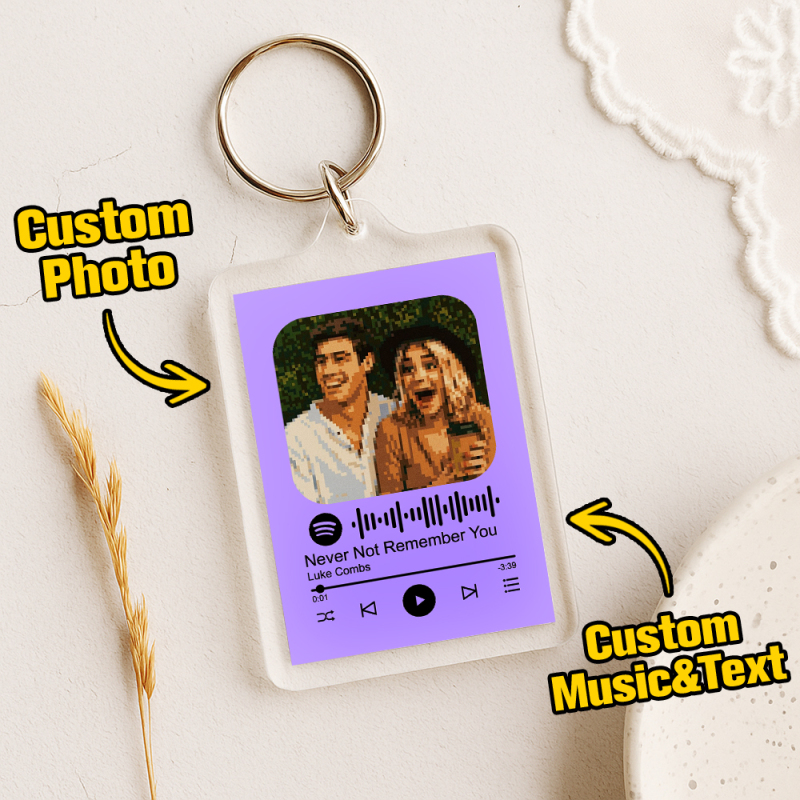 Custom Spotify Code Keychain with Photo Pixel Art, Personalized Text & Music Unique Gift for Couples