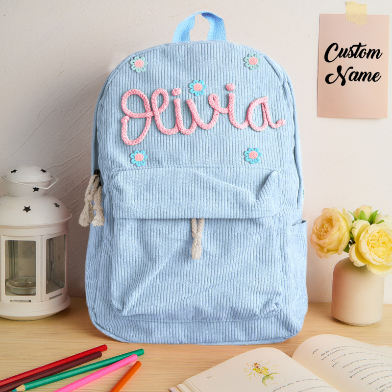 Handmade Corduroy Backpack: Personalized Embroidered School Bags for Kids and Toddlers