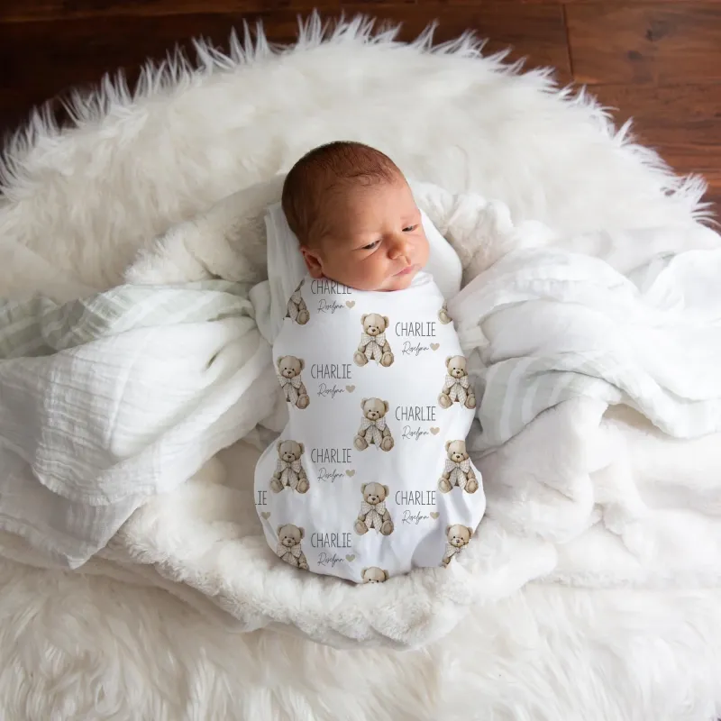 Adorable Teddy Bear Design This baby swaddle blanket features a charming teddy bear pattern that brings a sense of warmth and comfort to your nursery. The sweet and classic design creates a cozy atmosphere for your baby making it an essential accessory for daily snuggles and memorable newborn photography sessions.