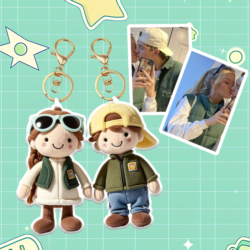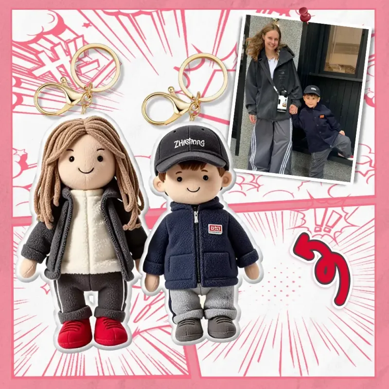 Personalized Photo Bag Charm Plush Doll Keychain Mini Me Plush Keychain Mom and Son
