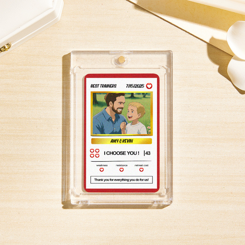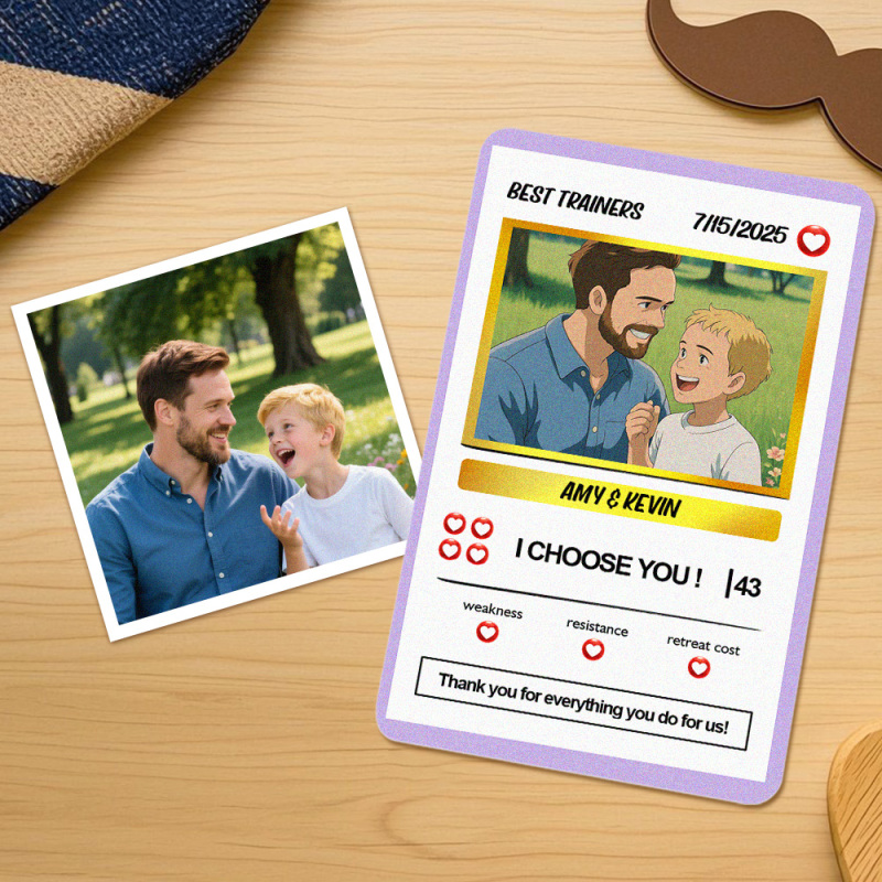 Celebrate Father's Day with this one of a kind custom Poke Card Father's Day card. We will take your picture and turn it into an anime inspired art card. size:W11*H7.3cm