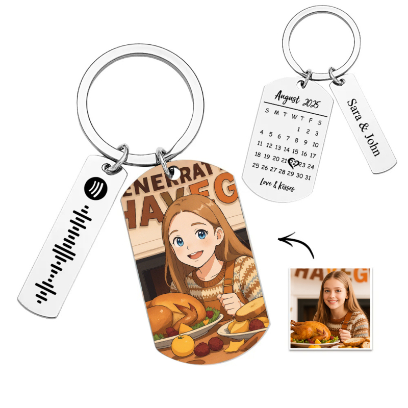 Personalized Spotify Calendar Keychain Gibli Style Custom Picture & Music Song Code Photo Keyring Best Gifts for Thanksgiving