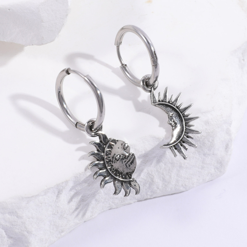 Sun and Moon Celestial Jewelry Set Asymmetrical Hoop Earrings & Matching Necklace for Couples Celestial Jewelry Boho Sun-Moon Necklace